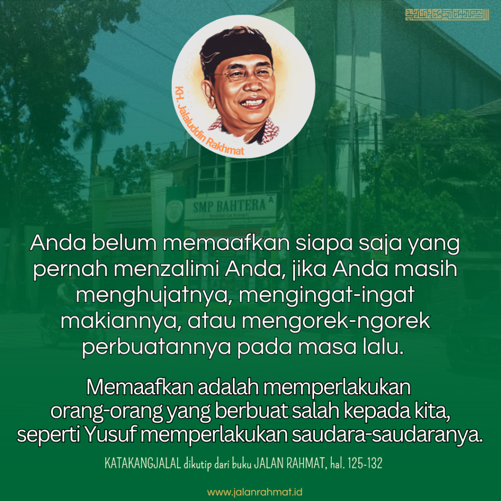 Dahulu, saudara-saudara Yusuf itu, karena kedengkiannya, melemparkan Yusuf ke dalam sumur. Setelah Yusuf berjuang mengatasi kesengsaraan karena ulah saudara-saudaranya, akhirnya ia memperoleh jabatan yang tinggi dalam pemerintahan. Saudara-saudaranya datang untuk meminta pertolongan kepadanya. Mereka bersimpuh meminta maaf dan mengakui kesalahannya. Apa yang dilakukan Yusuf? “Dia (Yusuf) berkata, ‘Pada hari ini tidak ada cercaan terhadap kamu, mudah-mudahan Allah mengampuni (kamu), dan Dia adalah Maha Penyayang di antara para penyayang’,” (QS. Yusuf [12]: 92).
