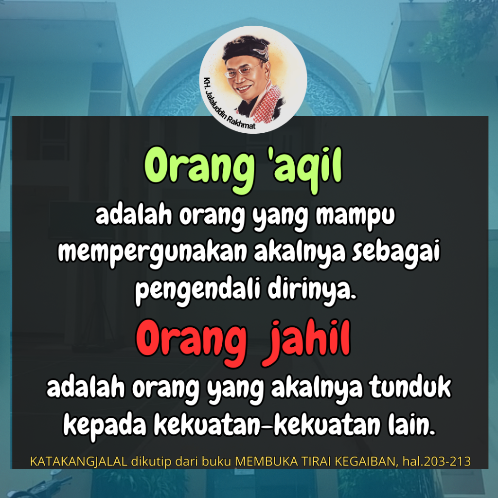 Jadi, akallah yang harus menguasai seseorang. Dengan demikian, orang yang dapat disebut sebagai orang ‘aqil adalah orang yang mampu mempergunakan akalnya sebagai pengendali dirinya. Dan orang yang jahil adalah orang yang akalnya tunduk kepada kekuatan-kekuatan lain.