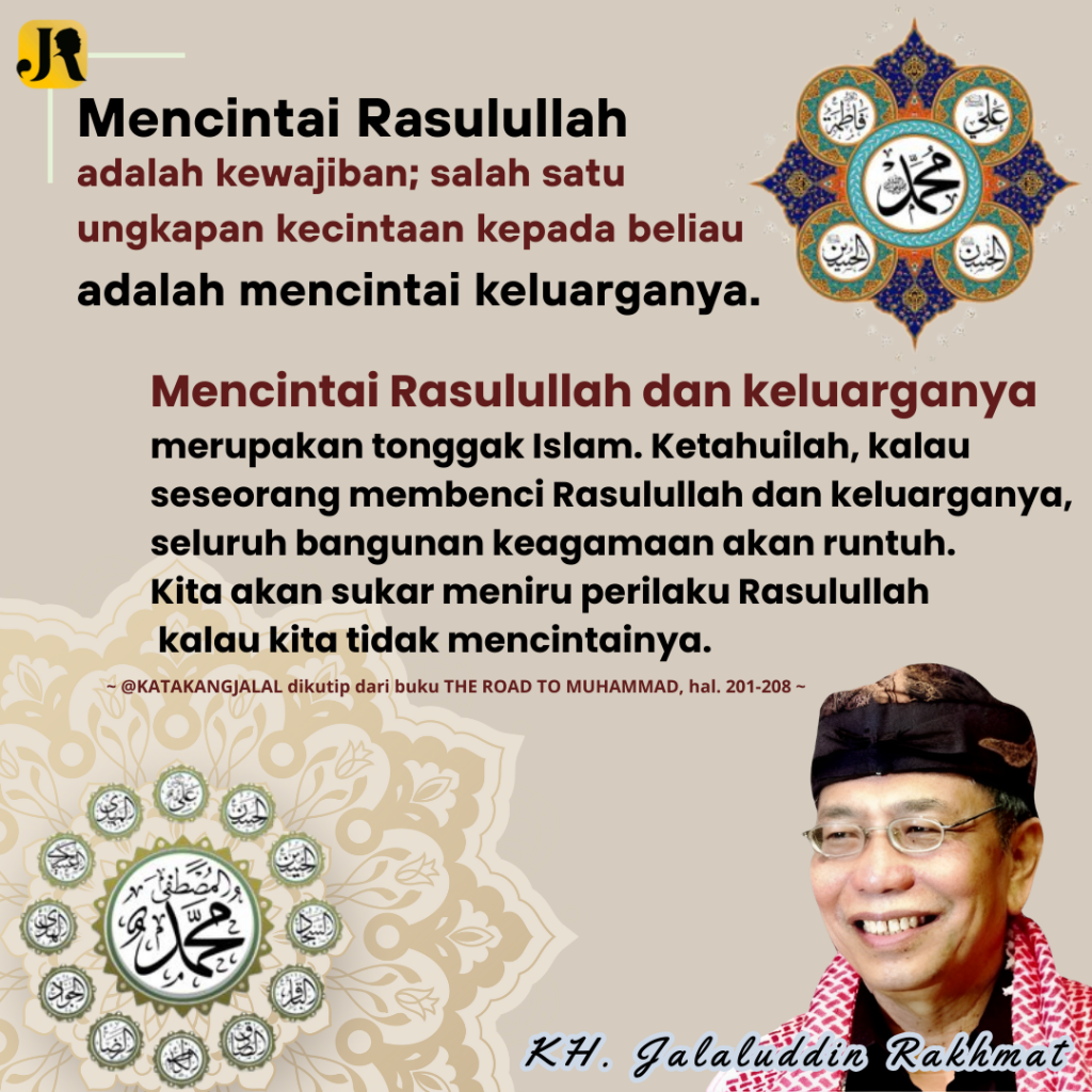 Pertanyaan kita selanjutnya adalah apakah kecintaan kita kepada Rasulullah lebih besar daripada kecintaan kita terhadap sepak bola atau hal-hal lainnya? Kita perlu bertanya seperti itu, karena mencintai Rasulullah dan keluarganya merupakan tonggak Islam. Ketahuilah, kalau seseorang membenci Rasulullah dan keluarganya, seluruh bangunan keagamaan akan runtuh. Kita akan sukar meniru perilaku Rasulullah kalau kita tidak mencintainya. JR Wa mā taufīqī illā billāh, ‘alaihi tawakkaltu wa ilaihi unīb