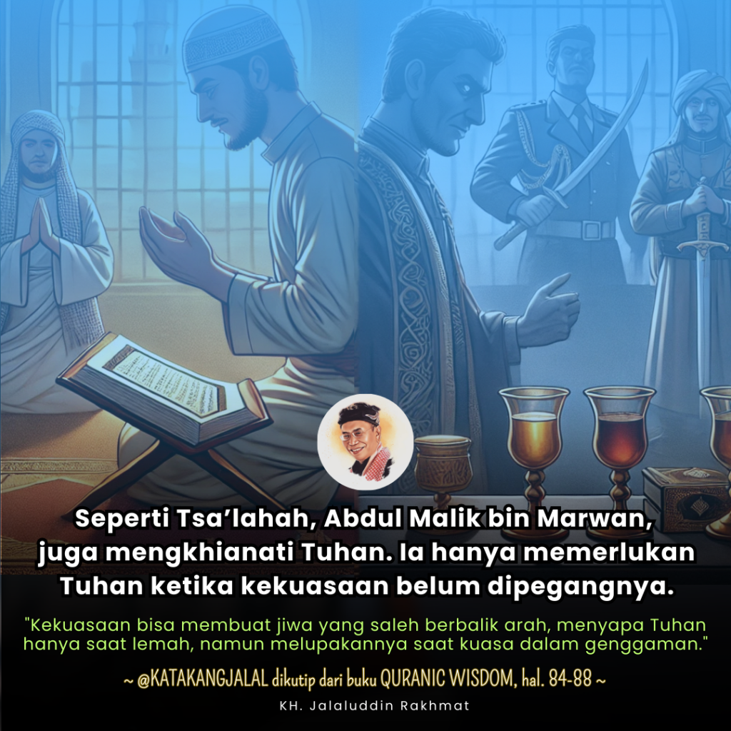 Seperti Tsa’lahah, Abdul Malik bin Marwan, juga mengkhianati Tuhan. Ia hanya memerlukan Tuhan ketika kekuasaan belum dipegangnya. JR—wa mā taufīqī illā billāh, ‘alaihi tawakkaltu wa ilaihi unīb.