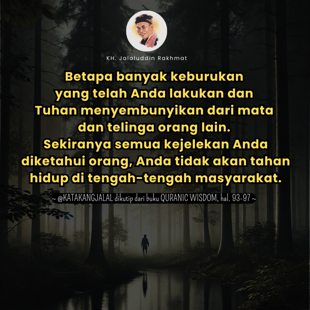 Perhatikan, betapa banyak keburukan yang telah Anda lakukan dan Tuhan menyembunyikan dari mata dan telinga orang lain. Sekiranya semua kejelekan Anda diketahui orang, Anda tidak akan tahan hidup di tengah-tengah masyarakat.