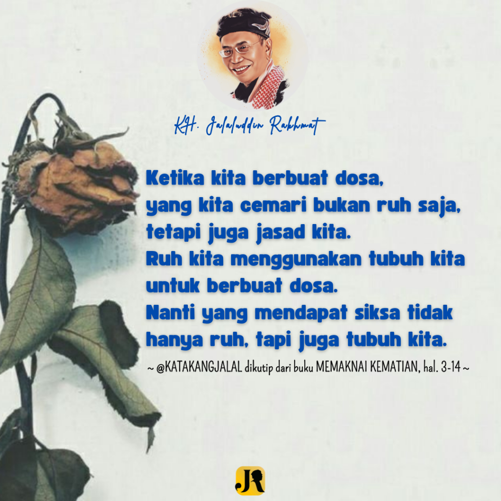 Umumnya orang yang ahli maksiat itu sehat-sehat. Mereka tidak mendapat musibah. Dagangnya untung terus. Kalau berbuat salah. pengadilan pun tak sanggup menuntutnya. Musibah-musibah jarang menimpanya. Sakit yang menghapuskan dosa, juga tak dialaminya. Haji pun jarang dilakukannya dan seterusnya. Maka saat kembali, di pintu kerajaan Tuhan itu, seperti anak kecil tadi, masih penuh kotoran dan debu. Pendeknya mereka membutuhkan proses penyucian lagi. Maka kematian itu termasuk juga proses penyucian. Imam Al-Hadi mengibaratkan kematian dengan kamar mandi. Saat menghadapi orang yang takut kematian, ia berkata. “Apakah kamu enggan masuk ke kamar mandi untuk membersihkan kotoran-kotoran yang menempel di tubuhmu?” JR—wa mā taufīqī illā billāh, ‘alaihi tawakkaltu wa ilaihi unīb.