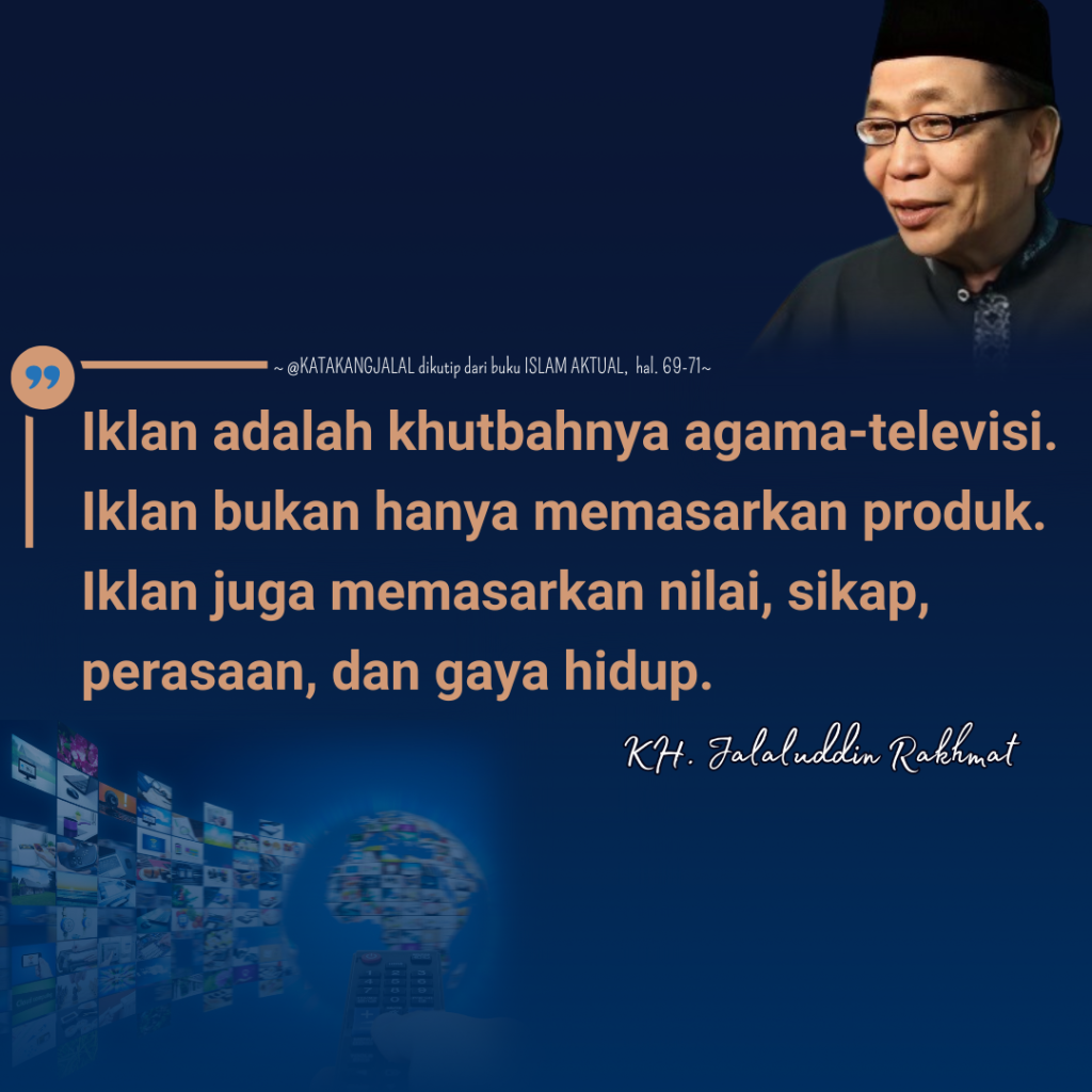Banyak kritisi sosial menuding iklan televisi sebagai biang kerok segala kerusuhan dan. keresahan sosial. Karena pertimbangan semacam itu, iklan dihapuskan dari TVRI. Tetapi, iklan sudah berkelindan dengan televisi. Ketika iklan dilarang dari pintu depan, ia masuk lewat pintu belakang Bagaimanapun, iklan televisi adalah jantung yang memompakan darah pada bisnis televisi. Kini, televisi swasta mengaktifkan kembali peran iklan. Sebagaimana ritus agama tidak lengkap tanpa khutbah, maka televisi pun tidak sempurna tanpa iklan. Setuju atau tidak, kehidupan kita dan keluarga kita selanjutnya akan digerakkan oleh iklan menuju—meminjam istilah John Kenneth Galbraith—the unqualified commitment to technological change (komitmen total terhadap perubahan teknologikal). JR — wa mā taufīqī illā billāh, ‘alaihi tawakkaltu wa ilaihi unīb