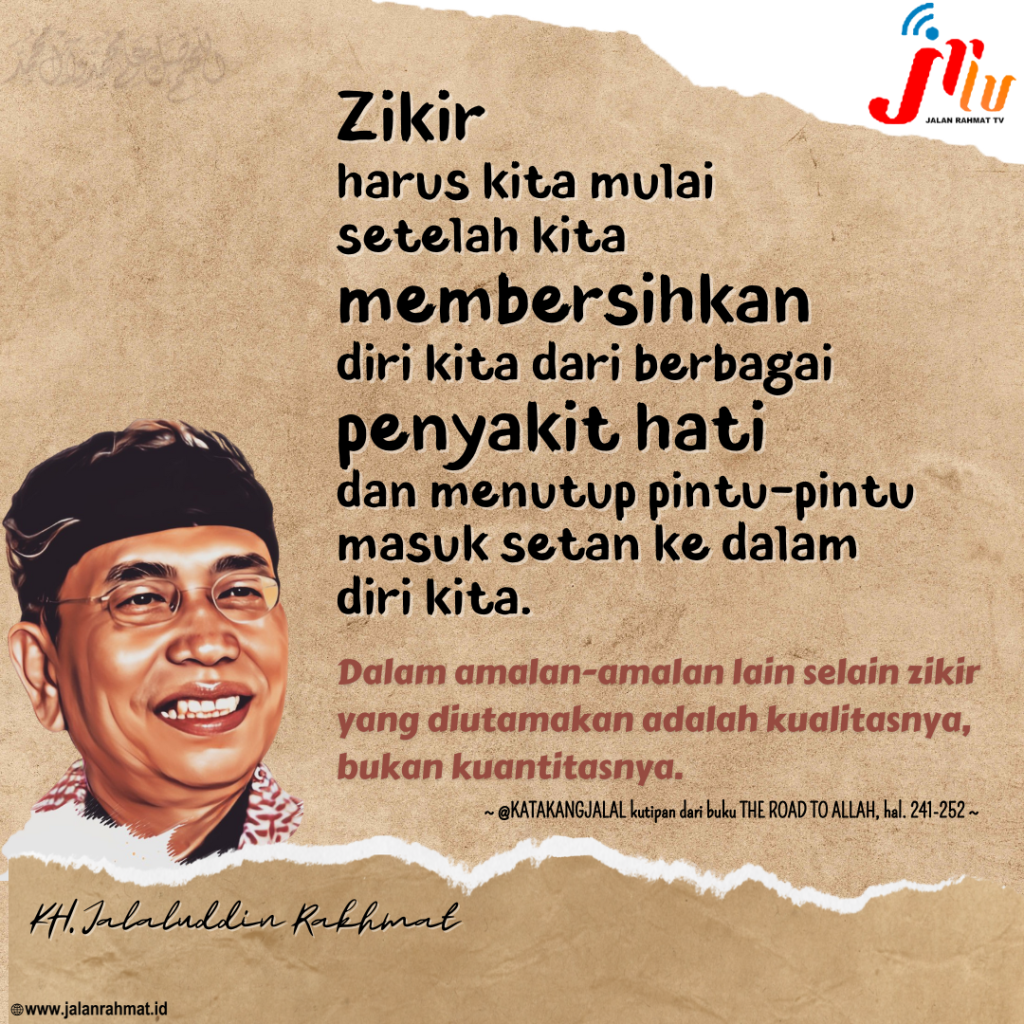 Suatu saat, Imam Ghazali ditanya oleh seseorang, “Katanya setan dapat tersingkir oleh zikir kita, tapi mengapa saya selalu berzikir namun setan tak pernah terusir?” Imam Ghazali menjawab, “Setan itu seperti anjing. Kalau kita hardik, anjing itu akan lari menyingkir. Tapi bila di sekitar diri kita masih terdapat makanan anjing, anjing itu tetap akan datang kembali. Bahkan mungkin anjing itu bersiap-siap mengincar diri kita, dan ketika kita lengah, ia menghampiri kita. Begitu pula halnya dengan zikir, zikir tidak akan bermanfaat bila di dalam hati kita masih kita sediakan makanan-makanan setan. Ketika sedang memburu makanan, setan tidak akan takut untuk digebrak dengan zikir mana pun. Pada kenyataannya, bukan setan yang menggoda kita tetapi kitalah yang menggoda setan dengan berbagai penyakit hati yang kita derita.” Zikir harus kita mulai setelah kita membersihkan diri kita dari berbagai penyakit hati dan menutup pintu-pintu masuk setan ke dalam diri kita.