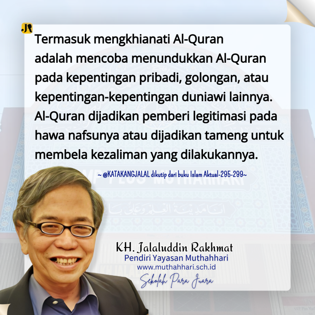 KH. Jalaluddin Rakhmat, Pendiri Yayasan Muthahhari (Untuk Pencerahan Pemikiran Islam) dan Sekolah Para Juara (SD Cerdas Muthahhari www.scmbandung.sch.id, SMP Plus Muthahhari www.smpplusmuthahhari.sch.id, SMP Bahtera www.smpbahtera.sch.id, dan SMA Plus Muthahhari www.smaplusmuthahhari.sch.id).
