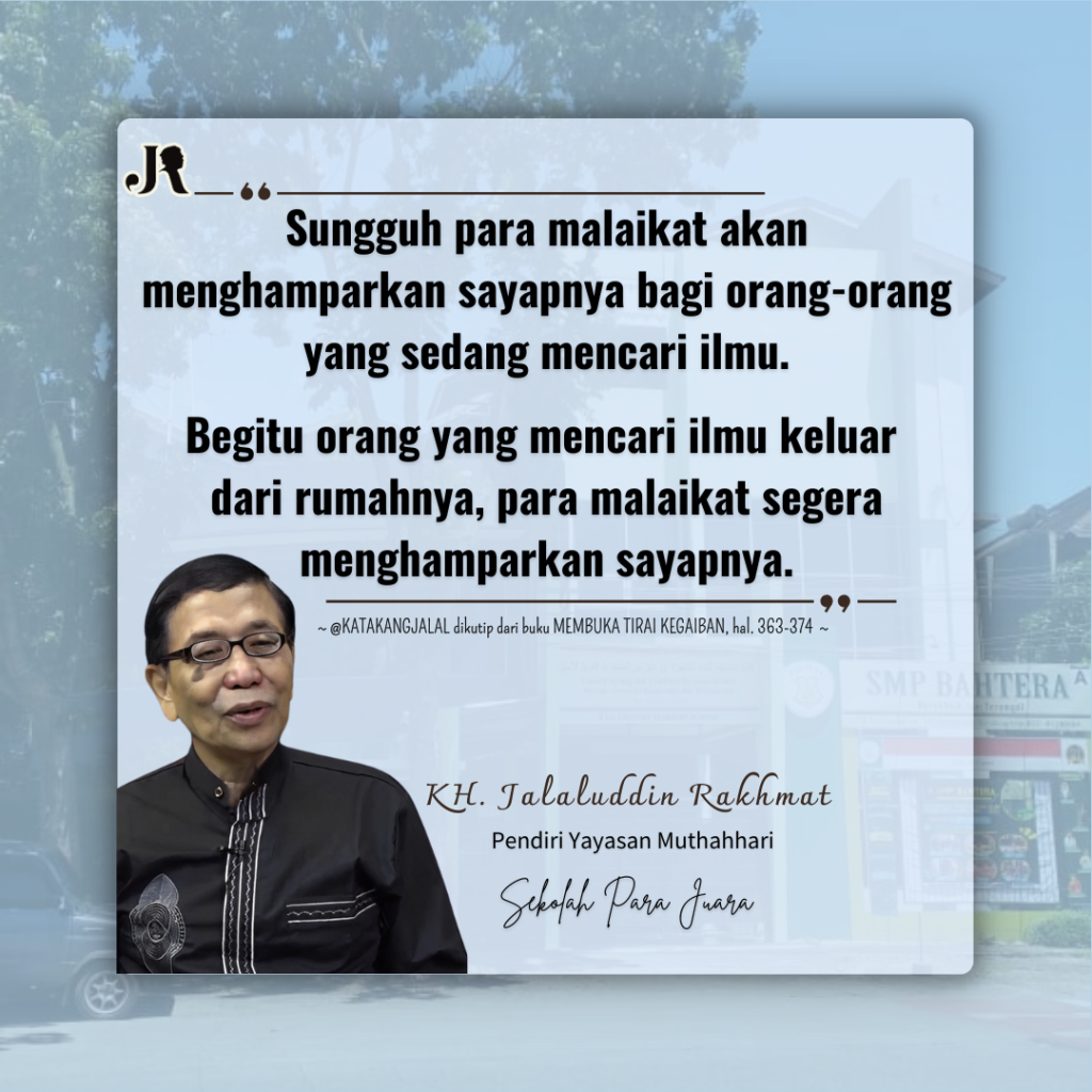 KH. Jalaluddin Rakhmat, Pendiri Yayasan Muthahhari (Untuk Pencerahan Pemikiran Islam) dan Sekolah Para Juara (SD Cerdas Muthahhari www.scmbandung.sch.id, SMP Plus Muthahhari www.smpplusmuthahhari.sch.id, SMP Bahtera www.smpbahtera.sch.id, dan SMA Plus Muthahhari www.smaplusmuthahhari.sch.id).