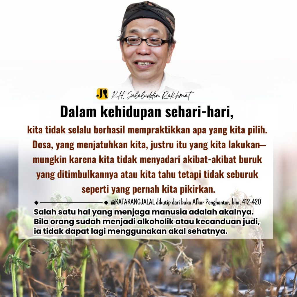 Akibat dosa di alam gaib jauh lebih mengerikan daripada akibatnya di alam lahir. Akibat dosa pada tubuh kita lebih ringan daripada akibatnya pada ruh kita. Alam gaib jauh lebih luas dari alam lahir, alam ini merentang panjang sejak dunia yang kita hadapi sekarang sampai kepada akhirat nanti. Tubuh kita hancur bersama dengan kematian, tetapi ruh kita ada dan terus berkembang sampai tingkat tak terhingga. Ruh kita berubah-ubah, apakah naik ke arah kesempurnaan atau jatuh kepada keburukan. Akibat gaib dari amal saleh ialah mengantarkan ruh kita kepada kesempurnaan. Akibat gaib dari dosa ialah menjatuhkan ruh kita kepada keburukan atau dalam bahasa Al-Quran- “membenamkannya ke bawah tanah”- (dassåhá). Qad aflaha man zakkâ-ha wa gad khâba man dassâhâ.